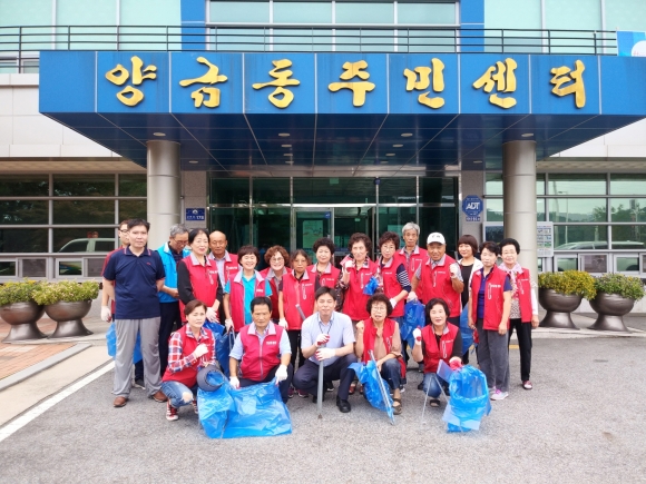 이날은 통장 26명이 두개조로 나뉘어 양금동주민센터에서 황금시장 주변과 감천 도로변을 다니면서 버려진 쓰레기를 깨끗하게 청소하고 환경을 정비하였다.