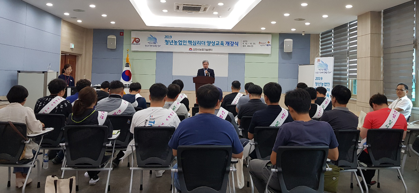 | 김천시(시장 김충섭)는 농촌지역 고령화를 극복하고 신성장동력 기반을 조성하기 위한 ‘청년농업인 핵심리더 양성교육’을 개설하여 지난 9월 10일 오후 2시, 김천시농업기술센터에서 청년교육생 32명이 참석한 가운데 개강식을 개최했다.