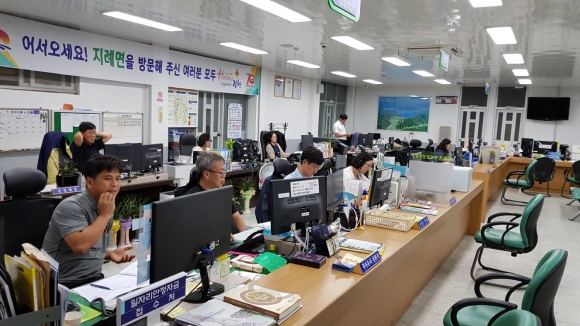 또한 민선7기의 중점사업 중의 하나인 김천부항댐관광화사업, 수도계곡테마 관광 자원화 사업 등 체류형 녹색관광 휴양도시의 거점지역으로써 지례면에 근무하는 직원들의 자긍심은 대단하다. 지난 7. 5字로 부임한 김종국 지례면장과 12명의 공무원들은 지역 주민들과 함께 ‘Happy together김천’ 건설을 위해 최선을 다하고 있다.
