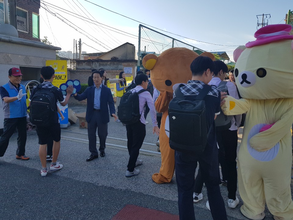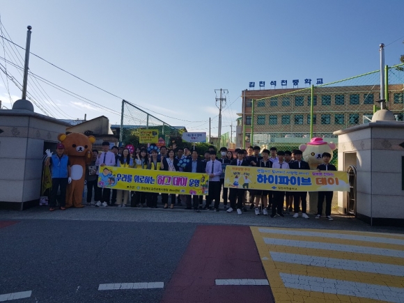 | 경상북도김천교육지원청(교육장 마숙자) Wee센터는 9월 17일(화) 김천석천중학교 정문에서 등교하는 학생 200여명을 대상으로 ‘우리를 위로하는 허그 데이, 하이파이브 데이’ 행사를 진행하였다.