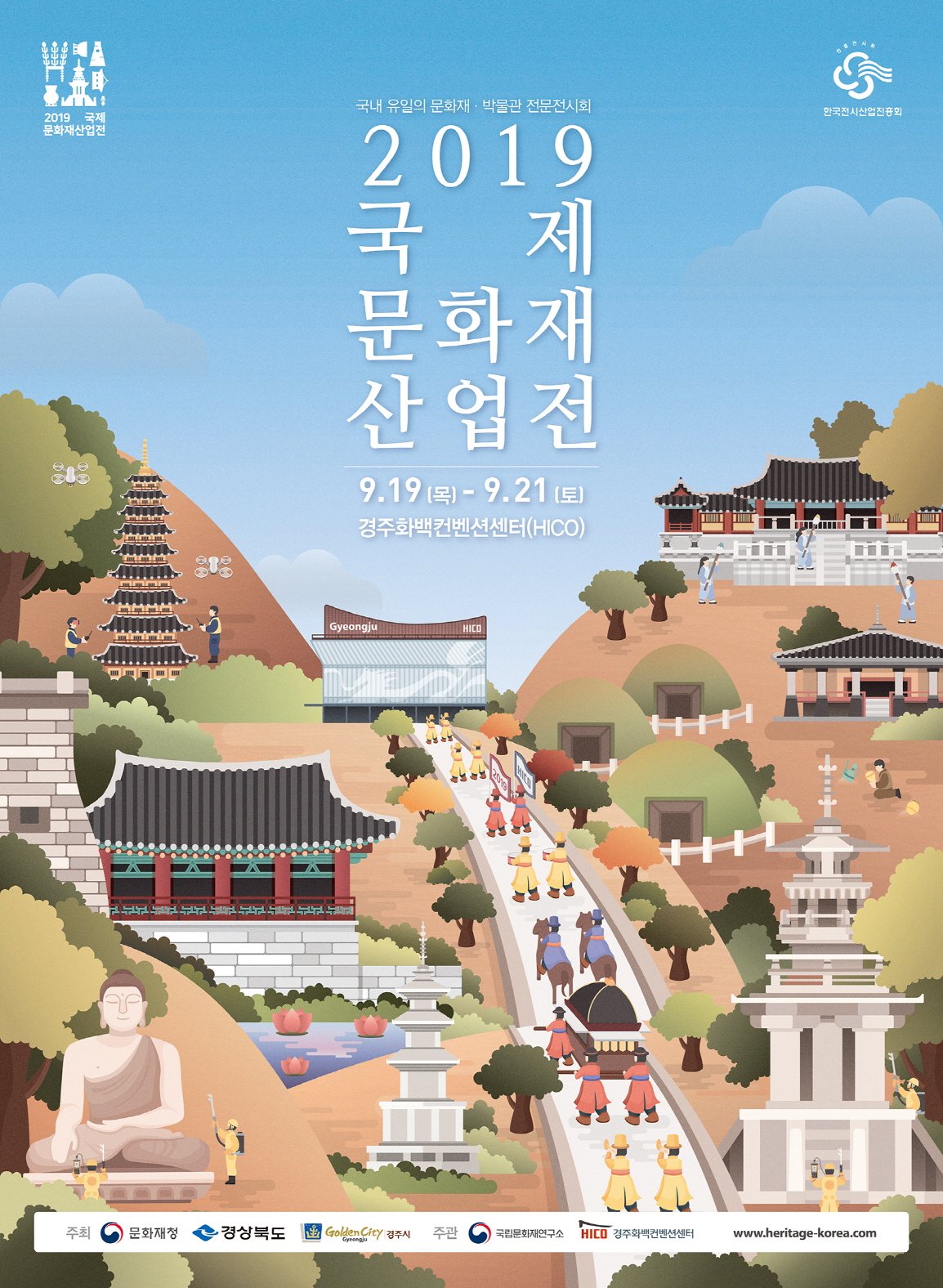 | 경상북도는 문화재청, 경주시와 함께 국내 유일의 문화재․박물관 분야의 전문 전시회인 ‘2019 국제문화재산업전’을 19일부터 21일까지 3일간 경주화백컨벤션센터(HICO)에서 개최한다고 밝혔다.