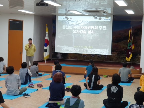 2019년 주민자치센터 활성화 공모사업(프로그램)으로 선정되어 개설된 증산면 주민자치센터 특성화 프로그램인 『요가강습』은 건강한 몸과 마음을 만들고, 지역 주민 스스로가 운영하는 주민자치 활동으로 주민참여 활성화에 기여하고자 개설된 프로그램이다.