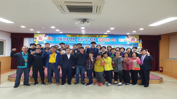 이날 결단식에는 조춘제 개령면장, 배현 체육회장, 지역구 시의원, 지역기관‧단체장, 종목별 선수단 모두가 참석하여 우승을 향한 선수단 결의를 다지고,