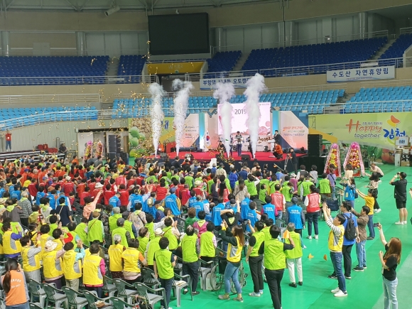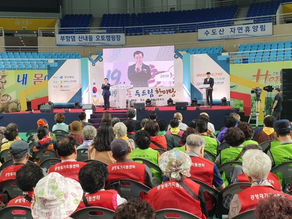 | 김천시(시장 김충섭)는 지난 9월 20일 경북재가노인복지협회 기관 간의 소통과 화합을 증진하기 위한 행사로 경상북도에서 주관하는「2019년 청춘두드림 행사」를 성황리에 개최하였다. 이날 행사는 김천시 재가노인복지센터(센터장 도선철)를 포함해 경북지역 재가노인복지기관 29개소가 참여하고 이용어르신과 자원봉사자 등 총 1,500여명이 참가하여 세대와 세대, 지역과 지역 간의 화합을 증진하는 소통의 장은 물론 건강하고 활기찬 노인여가문화의 조성을 촉진하는 축제의 장을 마련하였다.