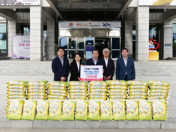 | 지난 9월 20일, ㈜HS산업은 김천시(시장 김충섭)를 방문하여 사랑의 백미 10kg 100포(250만원 상당)를 전달했다.
