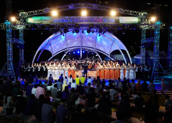 | 김천시문화예술회관(관장 김금숙)에서는 지난 19일 율곡동 안산공원에서 개최한 「김천시립예술단 SEVENTY(70) 콘서트」를 성황리에 마쳤다.