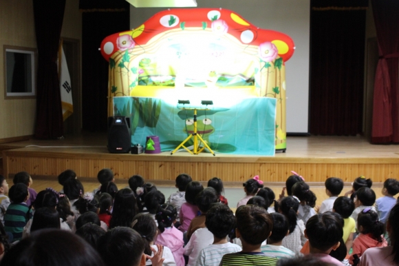 | 율곡유치원(원장 조금숙)은 지난 9월 23일에 율곡관에서 킹덤 인형 극단을 초청하여 인성 인형극‘말 안 듣는 청개구리’를 관람하였다. 인형극은 효와 정직의 가치를 이해하고 함양시키는 데 목적을 두고 진행되었다.