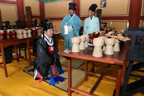 석전대제란 중요무형문화재 제85호로 지정된 의식행사로 공자를 모시는 사당인 문묘에서 지내는 큰 제사를 가리키며, 5성과 송조 2현, 동방 18현의 위패를 모시고 제향한다.
