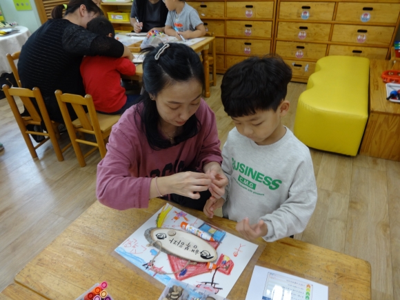 참여 한 학부모는 “아이가 참 즐거워하고 친구들에게나 선생님께 적극적으로 표현하고 활동하는 모습에 감동받았습니다.”, “함께 만들기 할 시간이 많지 않아서 아쉬웠는데 함께 할 수 있어 정말 좋은 시간이고 아이의 유치원 생활이 그려져 매우 마음에 들었습니다.”하고 소감을 적어주었다.