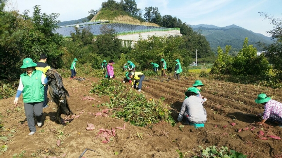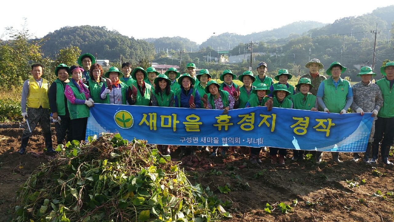 구성면 새마을협의회 휴경지 활용 “사랑의 고구마” 수확