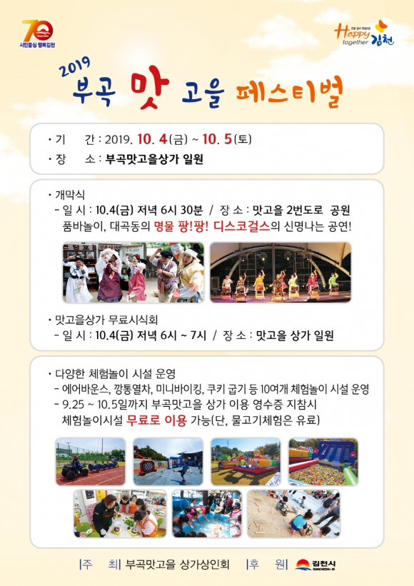 | 부곡맛고을상가상안회에서는 10월 4일∼5일 2일간 2019년 부곡맛고을 페스티벌을 개최한다.