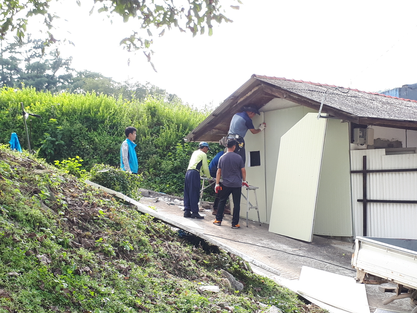 오후에는 벽에 구멍이 나서 쥐가 들락거려 생활이 불편한 독거노인 가구에 벽체보수공사를 하여 찬바람은 물론 쥐구멍까지 막아 생활에 불편함이 없도록 집수리를 실시하였다.