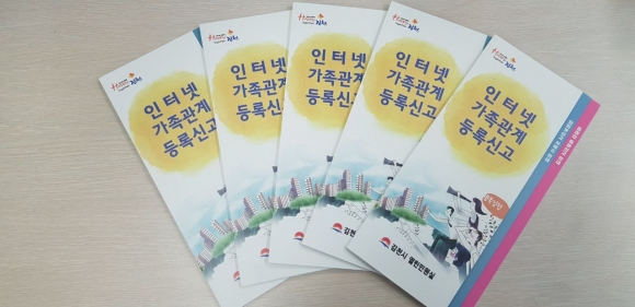 | 김천시(시장 김충섭)에서는 가족관계등록 인터넷 신고 및 안심상속 원스톱서비스를 널리 알리기 위한 리플릿을 제작하여 읍·면·동에 배부했다. 인터넷을 통한 가족관계등록신고는 법원에서 허가 결정을 받은 개명등의사건에 대하여 전자가족관계등록시스템(http://efamily.scourt.go.kr)에서 가족관계등록 신고 할 수 있는 서비스이며, 신고인의 공인인증서가 필요하다.