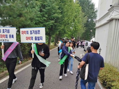 | 김천시 보건소는 10월 1일(화) 김천대학교에서 재학생을 대상으로 불법마약류의 폐해를 널리 알려 경각심을 고취하기위한「불법마약류 퇴치 캠페인」을 실시하였다.