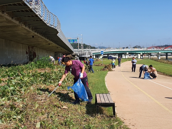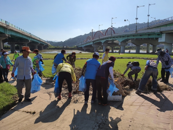 자산동, 태풍‘미탁’지나간 하천변 환경정비에 구슬땀
