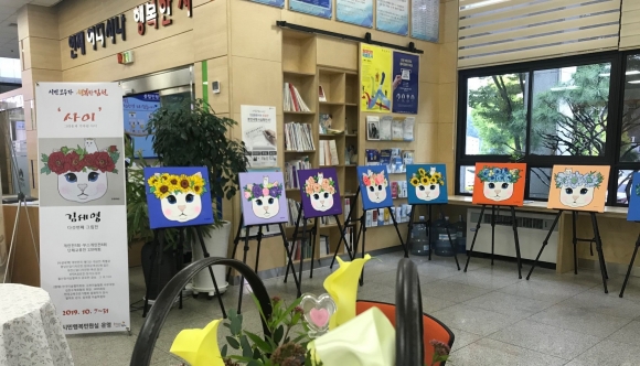 이번 전시회는 평소 ‘시민행복민원실 운영’에 공감한 김세영 향토작가의 재능기부로 ‘고양이’를 모티브로 한 디자인 일러스트 14점이 전시된다.