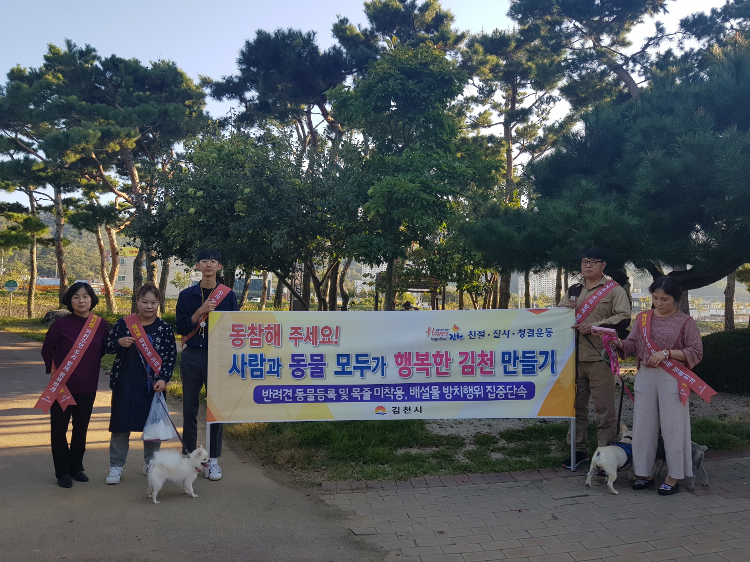 | 김천시(시장 김충섭)는 동물등록 자진신고 기간(ˊ19.7.1.~8.31.) 종료에 따라 9월부터 반려동물 출입이 잦은 공원이나 산책로 등을 중점적으로 동물등록 단속 및 성숙한 동물문화 조성을 위한 홍보 캠페인을 병행하여 시행해오고 있다.