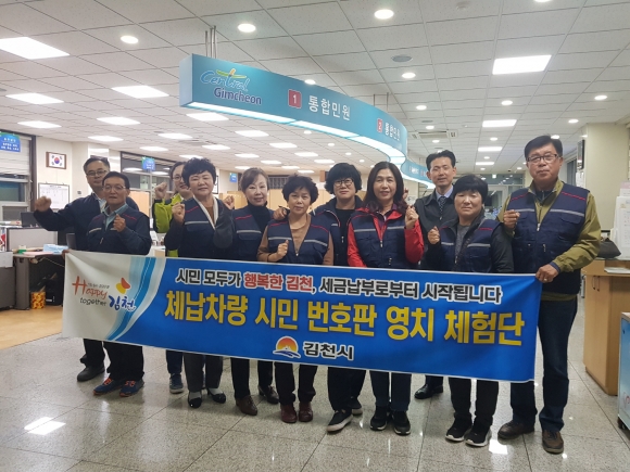 김천시 전체 체납의 약24%를 차지하고 있는 자동차세 체납 근절을 위해 대신동 새마을지도자·부녀회 회원들과 시청 세정과 및 대신동 직원 합동으로 번호판 영치 활동에 나섰다. 번호판 영치 체험 결과 관내차량 4대·관외차량 1대를 번호판 영치하였고 13대 차량에 영치예고문을 부착했다.