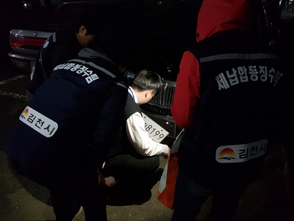 | 김천시 대신동에서는 10월 17일 19시부터 시민과 함께하는 번호판 영치체험 활동을 실시하였다.