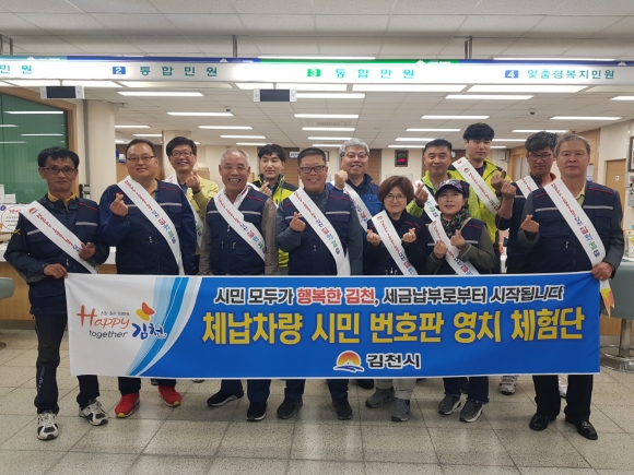 | 대곡동주민센터에서는 17일「Happy together」김천 운동의 일환으로 시민이 함께하는 체납차량 번호판 영치 체험단을 운영했다.