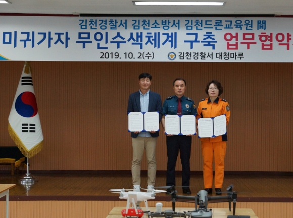 김천서, 미귀가자 무인수색체계 구축 위해 김천소방서·김천드론교육원과 업무협약 체결