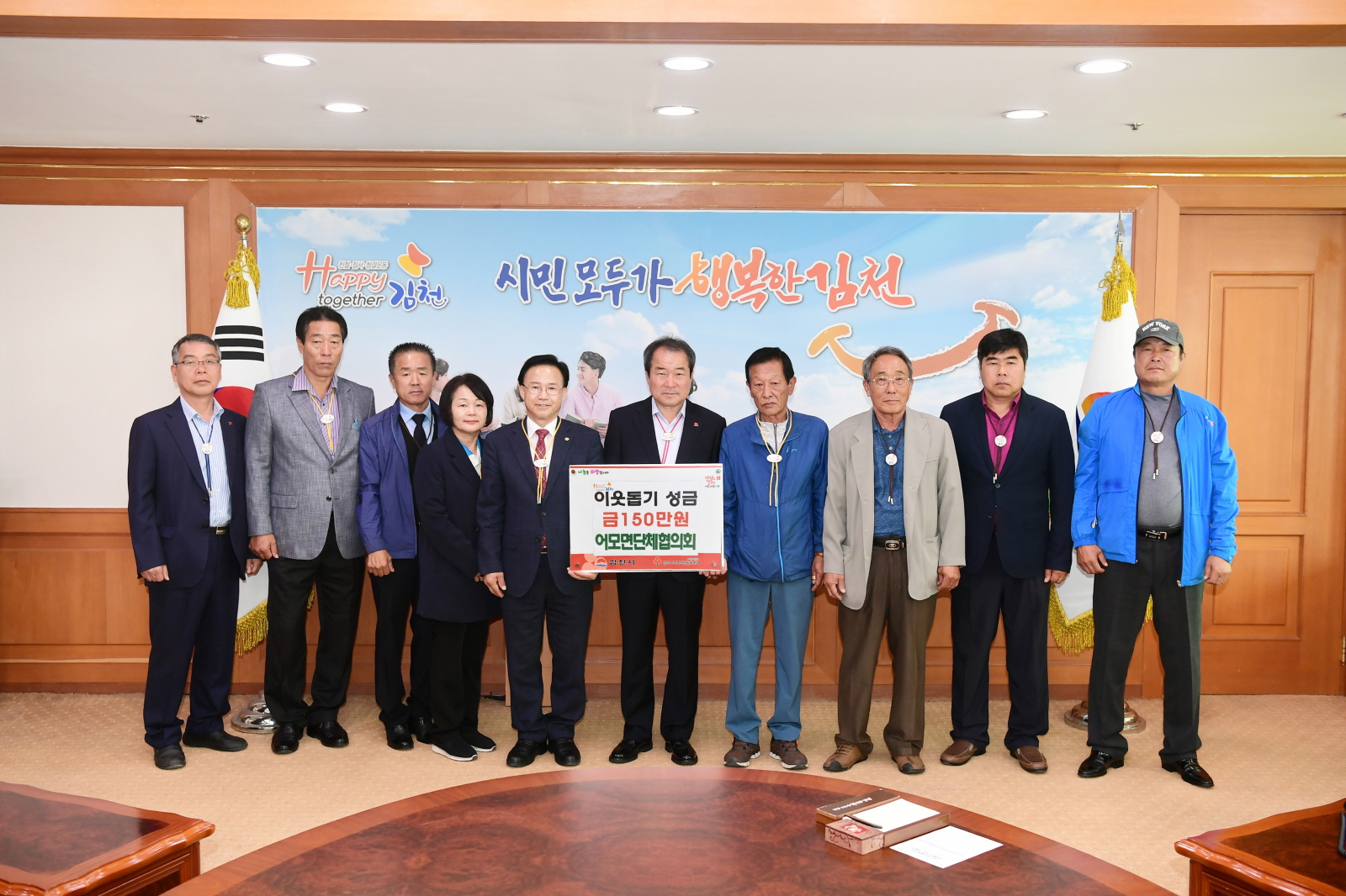| 지난 22일, 어모면단체협의회(체육회장 임영식)은 김천시청을 방문하여 이웃돕기 성금 150만원을 전달했다.