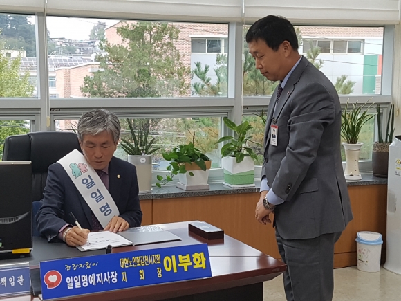 이부화 일일명예지사장은 김지사장으로 부터 위촉장을 받고, 지사 현황과 공단 주요현안인 건강보험 보장성 강화 정책, 노후까지 행복한 치매 국가책임제, 4년 연속 정부경영평가 우수기관(A등급)달성, 고객중심 경영을 통한 공공기관 고객만족도 3년 연속 우수기관 달성, 공공기관 청렴도 1위(최상위기관) 달성, 건강수명 향상을 위한 전국민 맞춤형 건강관리 등에 대해 논의하였으며, 현장에서 민원 내용을 청취하고 애로사항과 공단의 주요 현안 등을 공유했다.