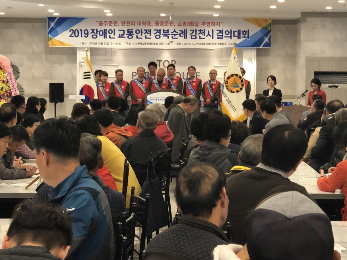 | (사)한국교통장애인협회 김천시지회(회장 맹점수)은 23일(수) 오후 3시 탑웨딩타운에서 「2019 장애인 교통안전 경북순례 김천시 결의대회」를 개최했다.