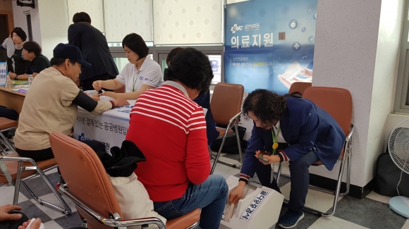 | 특히, 올해는 한국도로공사에서 농기계무상수리에 처음 참여하여 소형농기계 엔진오일 교체 등 3개소(아포읍, 개령면, 감천면)에서 서비스를 실시하였으며, 김천시 보건소 치매안심센터에서는 치매 예방을 위한 치매조기검진 선별검사를 2개소(남면, 개령면)에서 실시하였다.