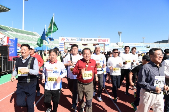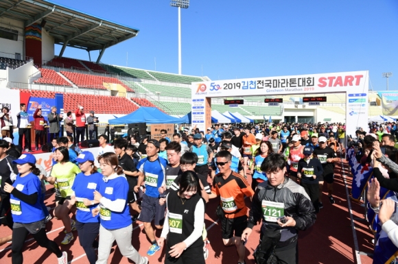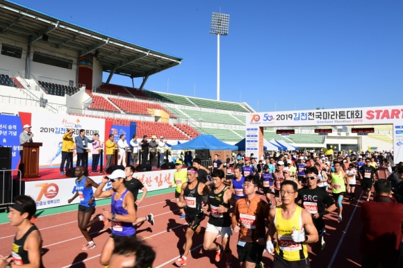 | 김천시(시장 김충섭)는 지난 27일 김천종합운동장에서『2019 김천전국 마라톤대회』를 4,000여명의 마라토너와 시민들이 참가한 가운데 성황리에 개최됐다.
