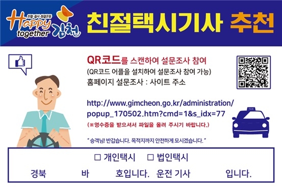 김천시, 친절택시기사 추천 설문조사 실시