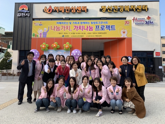 | 김천시보건소 치매안심센터는 지난 4일 치매환자와 가족, 지역주민 150여명이 함께하는 나눔가치, 가치나눔 프로젝트 행사를 개최했다.나눔가치, 가치나눔 프로젝트는 치매에 대한 부정적 인식을 개선하고 치매에 대한 공감대를 형성해 치매환자와 가족들의 정서적지지 및 함께하는 극복의지를 가지고자 경상북도, 경북광역치매센터, 김천시보건소 치매안심센터와 함께하는 프로젝트이다.