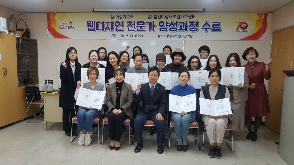| 김천시 평생교육원에서 운영하는 여성새로일하기센터(센터장 : 김성환)에서 지난 11월 6일 “웹디자인 전문가 양성과정” 수료식을 개최하였다.