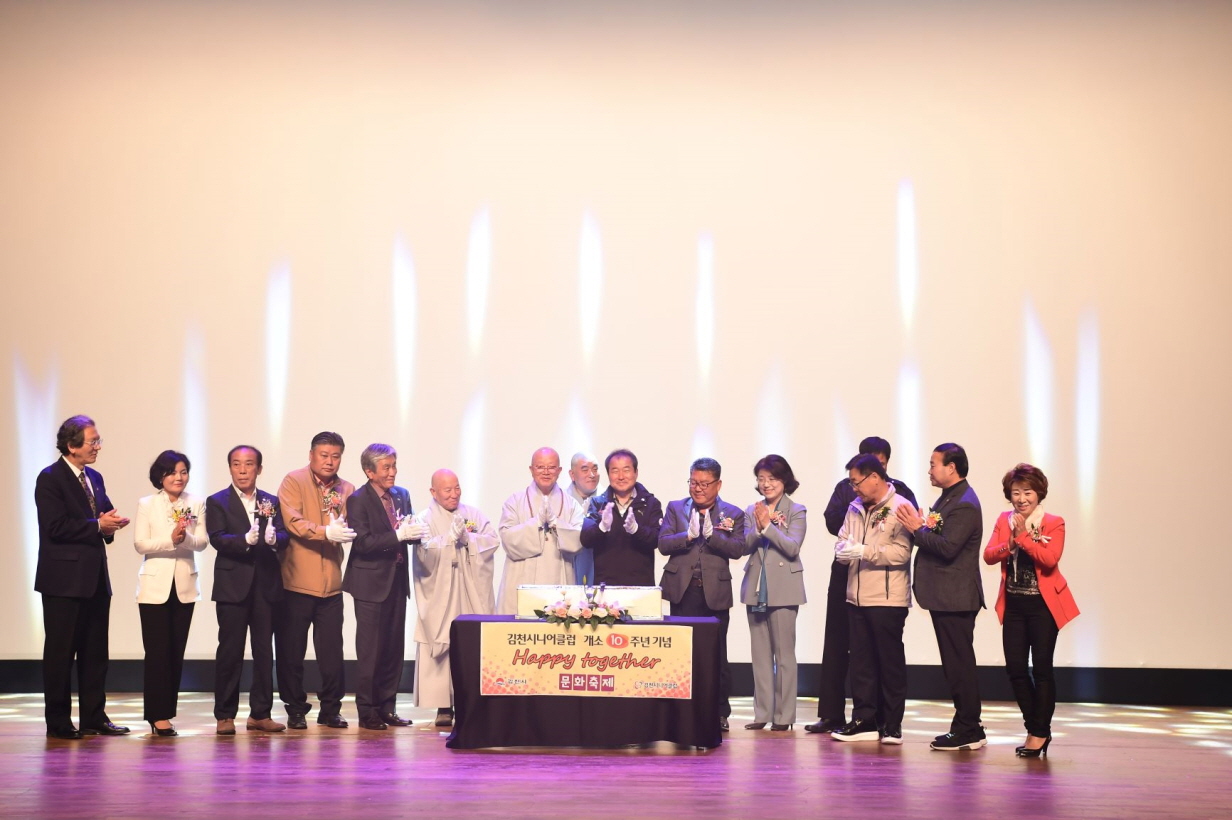 시니어클럽 주관으로 마련된 이날 행사는 ‘김천 시니어클럽 Happy together문화축제’ 라는 슬로건 아래 유공자 표창, 시니어클럽활동 영상, 참여자소감 발표, 퓨전국악한마당, 가요한마당 등 다채로운 문화행사로 치러졌다.
