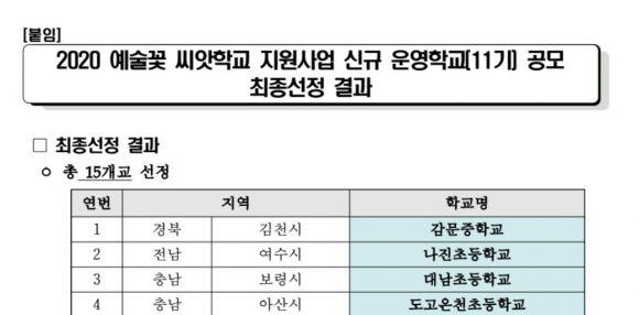 감문중, 2020 예술꽃 씨앗학교 최종 선정