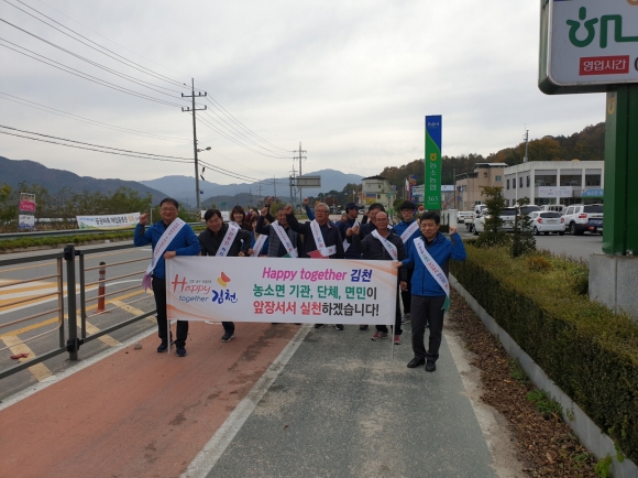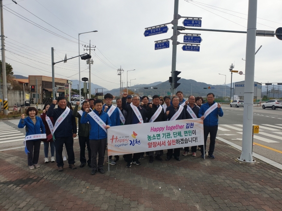 | 농소면 이장협의회(회장 안종복)와 면사무소 직원 일동은 지난 11월 12일 농소면 월곡 교차로 일대에서 ‘Happy Together 김천 운동’의 질서 운동 일환으로 교통안전 캠페인을 실시했다.