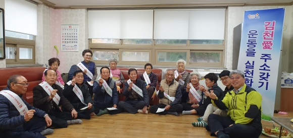 | 대곡동에서는 13일 동장 및 올해 새로 임명된 신규직원들을 주축으로 화성아파트 경로당 등 경로당 2개소를 방문하여 최근 감소세에 있는 김천시 인구를 만회하기 위해 마지막까지 노력을 기울였다. 김동진 대곡동장 및 직원들은 화성아파트 경로당 등에 방문하여 관내에 실거주중이지만 전입신고가 되어있지 않은 분들을 중심으로 김천愛주소갖기운동을 홍보하며 전입신고를 독려하였다.