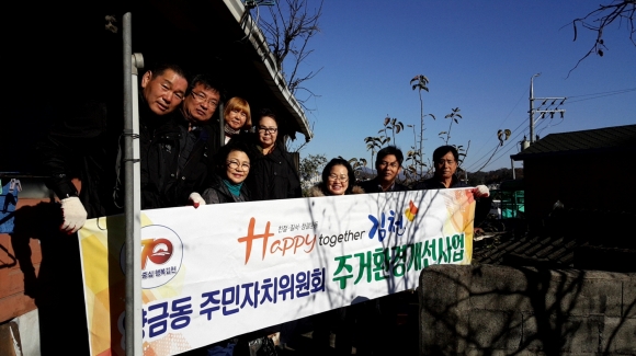 | 양금동 주민자치위원회(위원장 강준규)는 11월 12일부터 주거환경이 열악한 환경에서 생활하는 저소득 독거노인, 장애인 등의 가정에 주거환경 개선사업을 실시했다.
