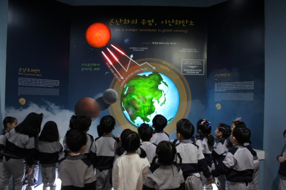 현장체험학습 당일에는 유아들과 정했던 교통안전 규칙과 공공기관의 예절에 대해 다시 상기한 후 녹색미래과학관으로 출발하였다. 녹색미래과학관에서는 상설전시관 체험과 풀돔 영상관 체험이 이루어졌다. 상설전시관에서는 기후 변화관, 그린 에너지관, 녹색 미래관, 야외 체험 시설 등 유아들의 관심에 부합하는 많은 시청각 자료들을 관람할 수 있었다. 만4,5세 원아들은 풀돔 영상관 체험에서 4D콘텐츠 영상을 관람하기도 하였다. 영상은 우주에서 온 친구들과 지구를 모험하는 내용으로 구성되었다. 유아들이 즐거워하는 영상 콘텐츠로 유아들이 지구환경을 재미있게 알아볼 수 있는 시간이 되었다.