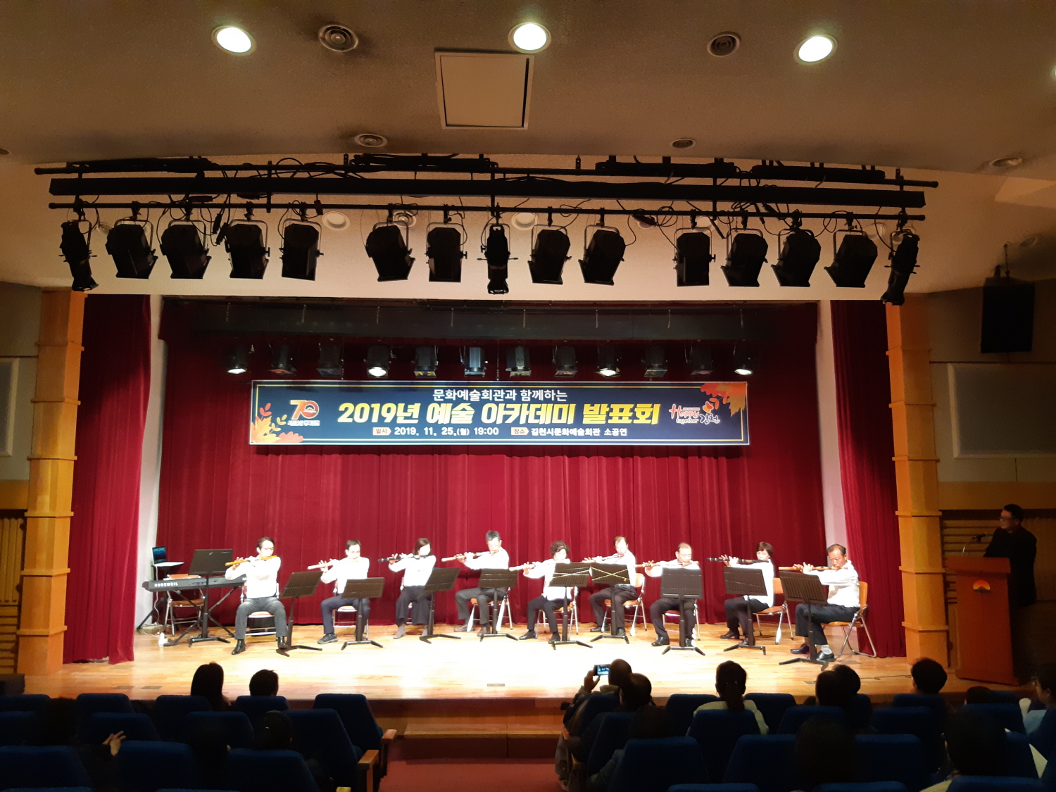 | 김천시문화예술회관(관장 김금숙)에서는 지난 11월 25일 문화예술회관 소공연장에서 개최한 「2019년 예술 아카데미 발표회」를 성황리에 마쳤다.