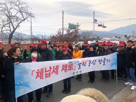 봉산면은 「 체납세 제로 클린봉산 만들기」를 위해 마을별 체납세 납부독려 방송 실시(주3회 이상), 거리캠페인 진행 등을 통해 적극적으로 홍보활동을 하고 있으며, 1월~11월까지 마을별 체납 징수액 및 징수율을 평가 후 12월에 「체납세 제로 클린 마을」을 선정하여 상장 수여 및 다음해 면사업에 대한 인센티브(가점)를 부여할 예정이다.