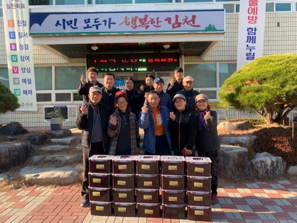 | 김천시 증산면(면장 김영욱)에 증산면 귀농귀촌협의회(회장 김정옥)에서 겨울을 맞이해 증산면 어르신들을 위해 “김장 김치 16박스”를 전달했다.