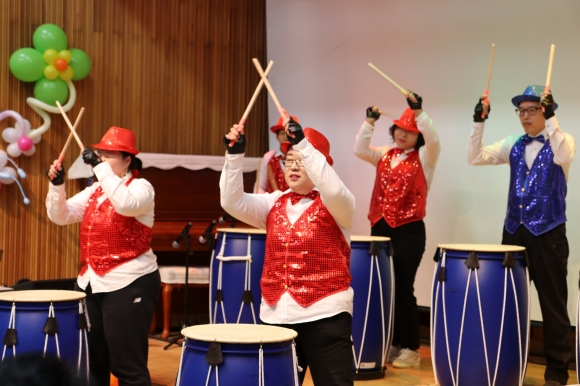 짬짬이 준비한 직원들의 축하무대로 분위기를 한껏 끌어올리며 시작된 행사는 난타, 하모니카, 해금, 수화, 합창 등 다채로운 공연으로 구성되어 1년 동안 갈고 딱은 실력을 뽐냈다.
