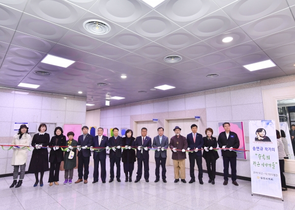 | 또한 송연규 작가는 “하나의 작품을 만들어 내기 위해 견뎌온 인고의 세월이 전시회를 찾는 시민들의 마음에 희망과 행복으로 다가갈 수 있었으면 좋겠다. 많은 시민과 교감할 수 있는 의회 로비에서 전시회를 갖게 되어 영광스럽고, 전시회 자리를 마련 해주신 김세운 의장님을 비롯한 의원님들께 감사드린다. 앞으로도 울림 있는 작품을 만들기 위해 최선을 다하겠다.”고 소감을 전했다.