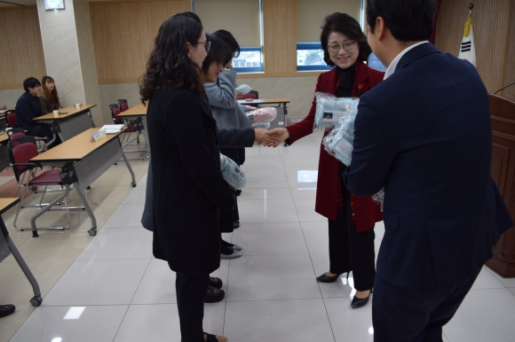 마숙자 교육장은 인사말을 통해 “늘 보이지 않는 곳에 열심히 자신의 맡은 바 업무를 열심히 해주시는 직원 여러분이 있어 김천교육의 미래는 항상 밝게 빛날 것”이라며 직원들을 격려하였다.