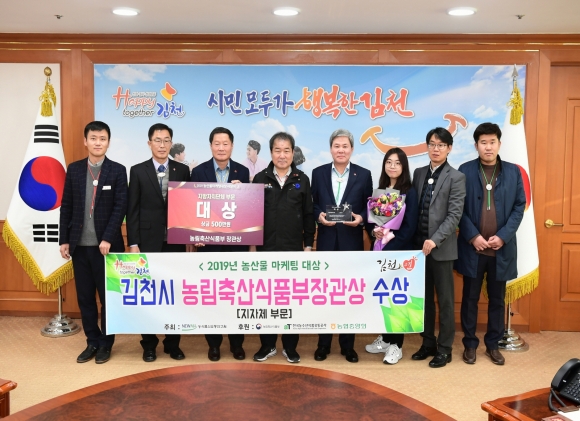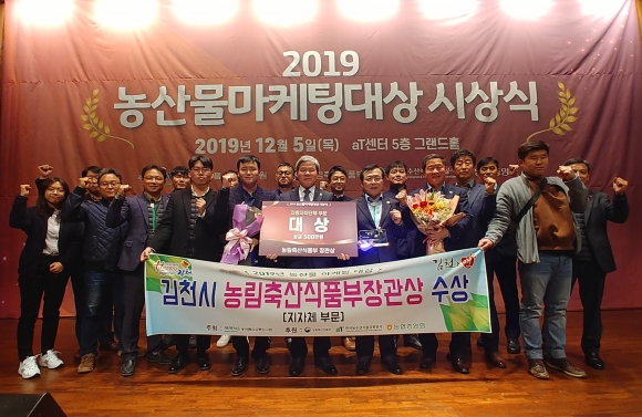 | 김천시(시장 김충섭)는 지난 12월 5일 서울 aT센터 5층 그랜드홀에서 열린「2019년 농산물 마케팅 대상」시상식에서 지자체부문 대상인 농림축산식품부 장관상을 수상하는 영광을 안았다.