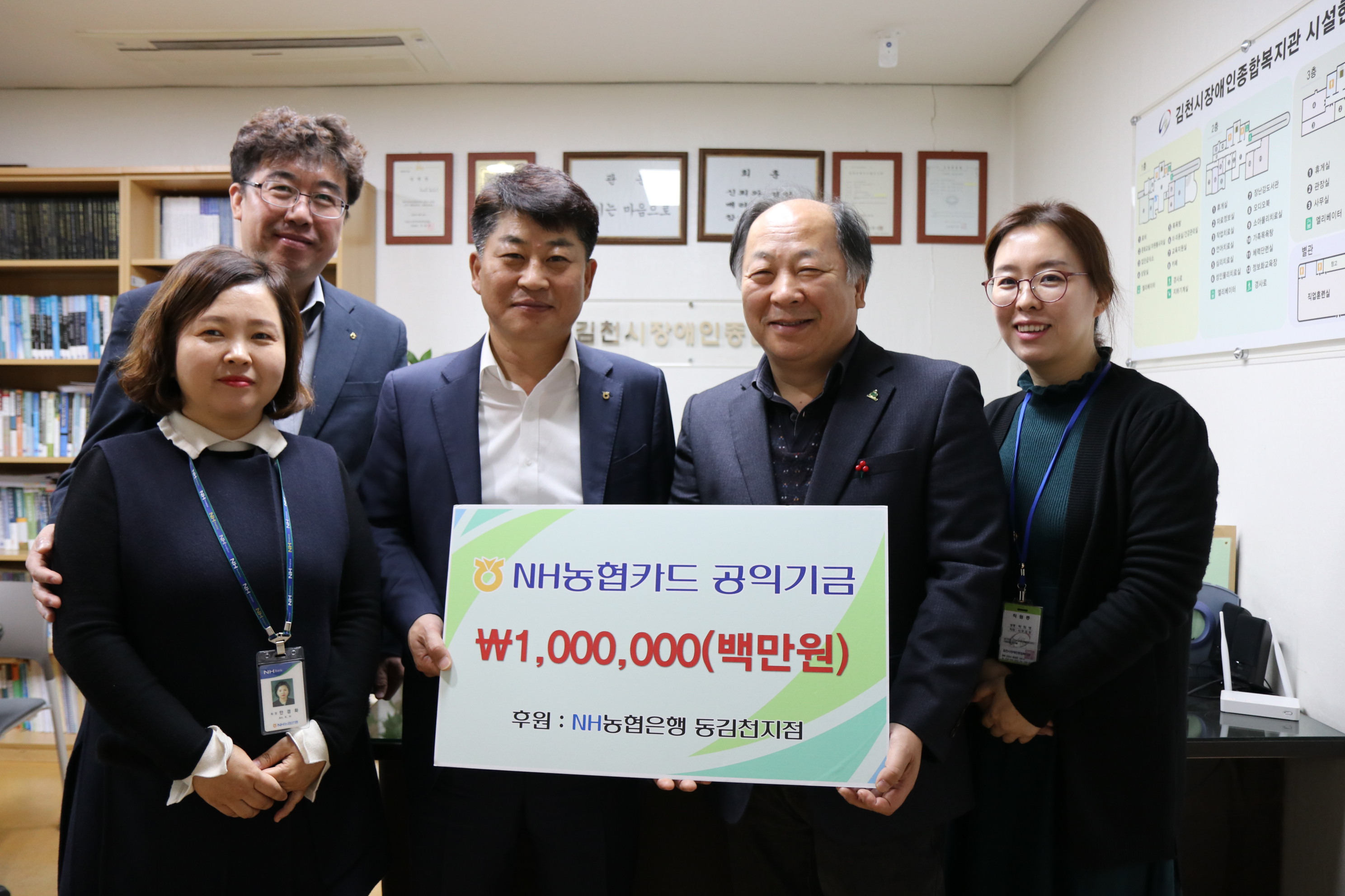 | NH농협은행 동김천지점(지점장 배현용)은 4일 김천시장애인종합복지관(관장 박선하)을 찾아 NH농협카드 공익사업의 일환으로 후원금을 기탁했다.