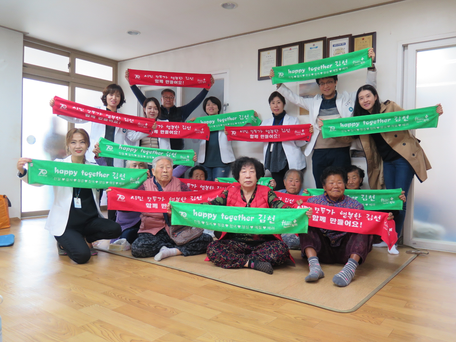 또한 주민들과 함께 Happy together 김천운동에 동참하면서 주민들에게 친절하게, 진료순서 질서있게, 마을회관 청결하게를 외치며 시민운동을 확산시켰다.
