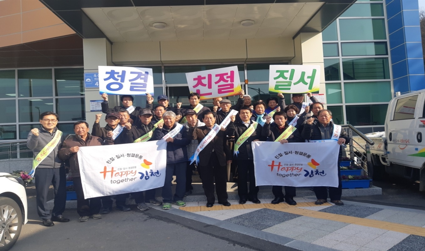 | 김천 남면노인회(회장 이인주)는 지난 12월 9일(월) 남면사무소 전정에서 이인주 회장을 비롯한 관내 마을 24명의 경로당 회장 전원이 참석한 가운데 『Happy together 김천운동』실천을 위한 결의를 다짐하고 남면 기관·사회단체 릴레이 캠페인에 여섯 번째로 동참할 것을 선언하였다
