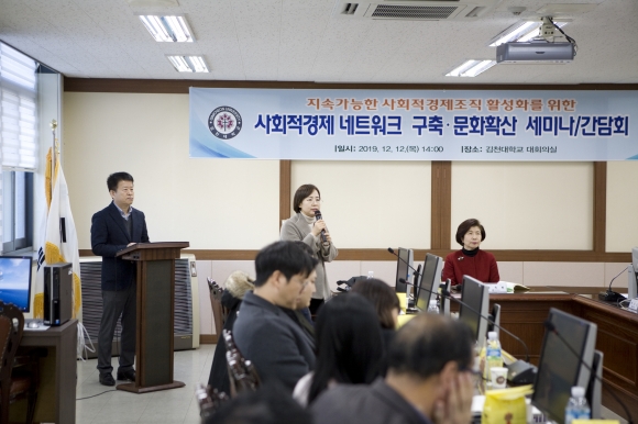 | 김천대학교(윤옥현 총장)는 지난 12일 김천대학교 본관 대회의실에서 지역의 사회적경제 네트워크 구축·문화확산을 위한 세미나 및 간담회를 개최하였다.